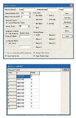 此软件用于将IM-5的测定数据传送至电脑,可以设定测定的间隔、次数以及范围,同时具备有积算测量的功能。