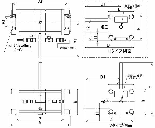| 安装部分尺寸(Af x Bf x C) | 164 x - x 幅5 | 242 x 50 xφ8 | 282 x 70 xφ10 | 320 x 150 x幅10 | 360 x 160 x幅10 | |